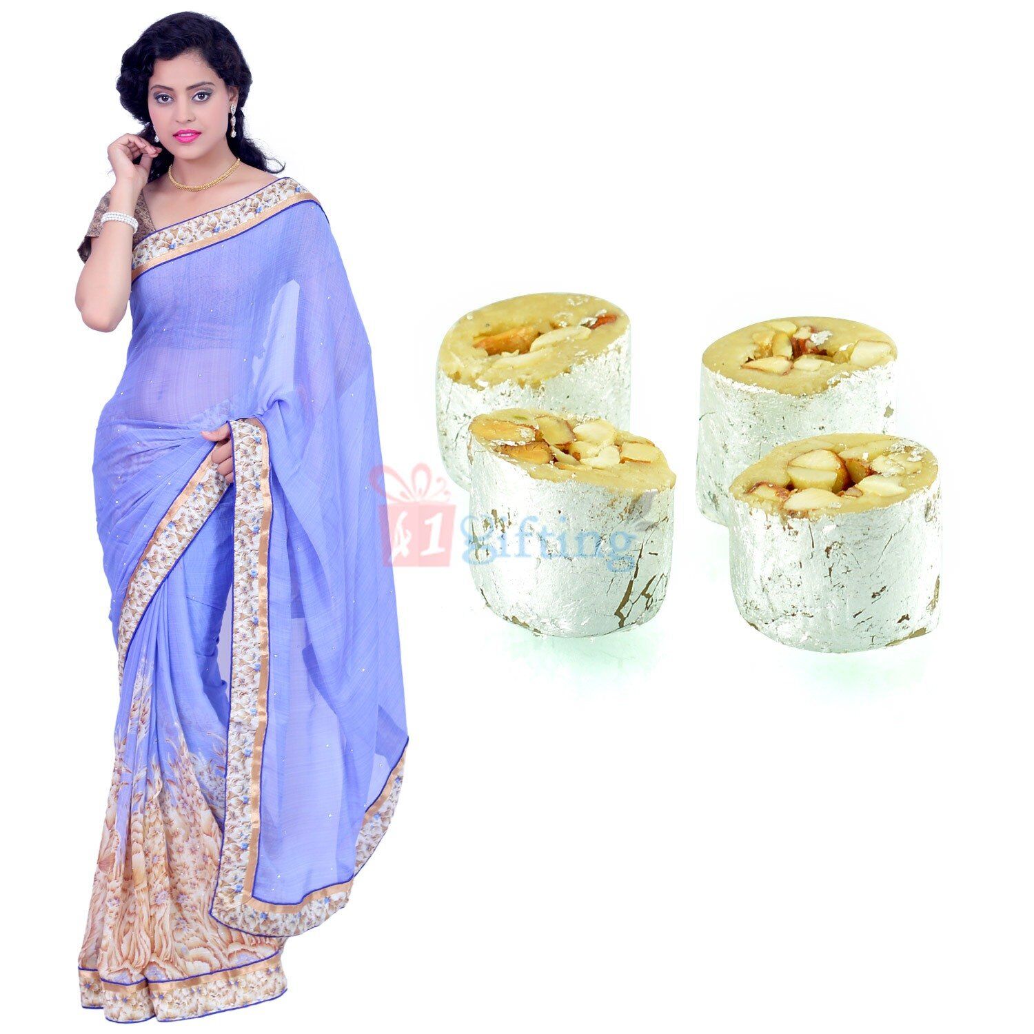 Buy Chiffon Georgette Flower with Kaju Honey Due Gift