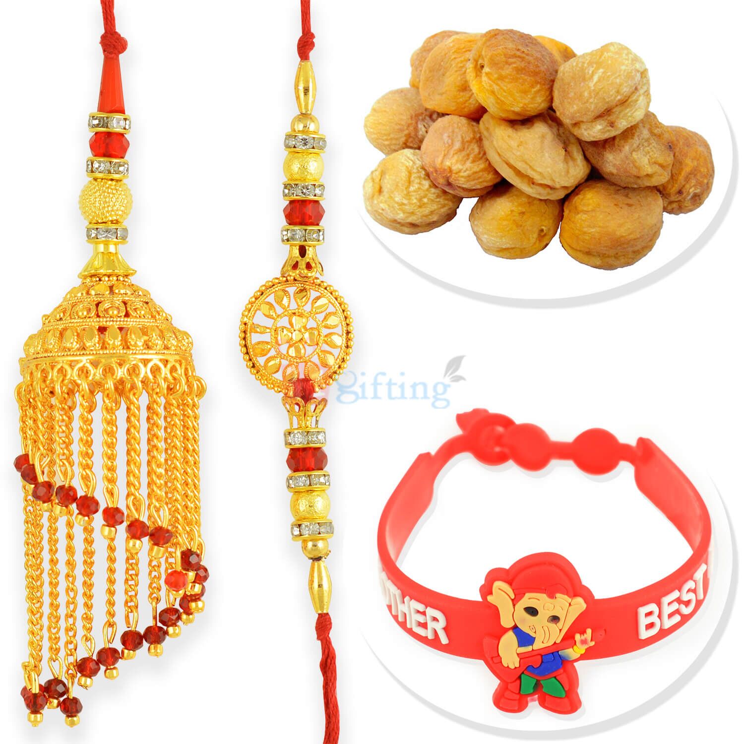 Buy Jhumar Pair Rakhi with Kids Rakhi and Apricot Dryfruits