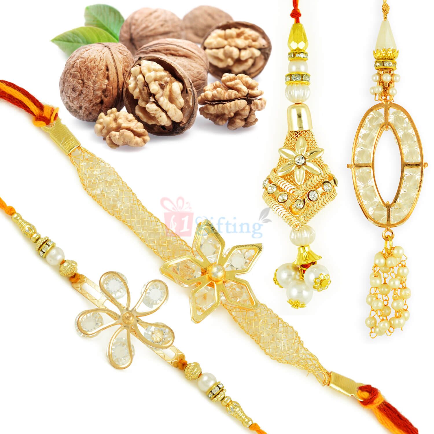 Buy Walnut Dryfruits with Amazing 2 Pair Rakhi Set for Bhaiya Bhabhi