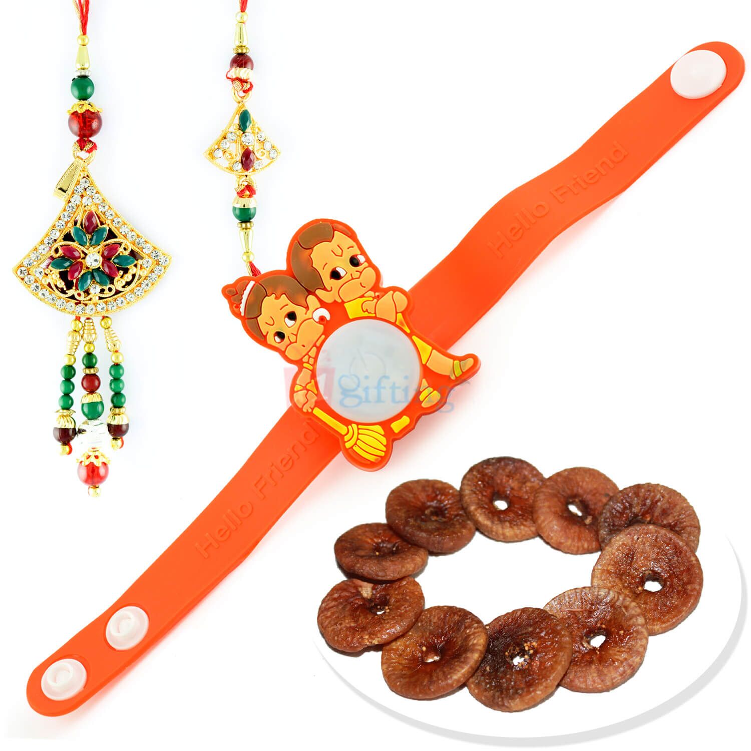 Buy Dry Fig with Beautiful Pair and Baal Hanuman Kids Rakhi