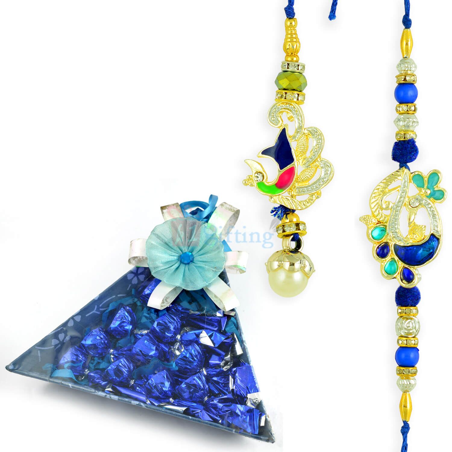 Buy Triangle Handmade Chocolate with Peacock Beautiful Pair Rakhi