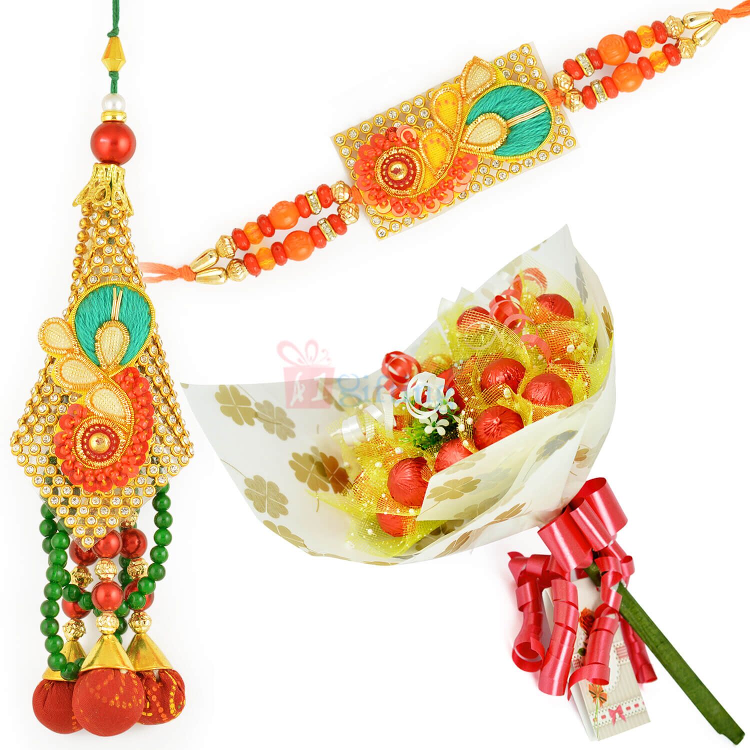 Handmade Chocolate Bouquet with Traditional Pair Rakhi