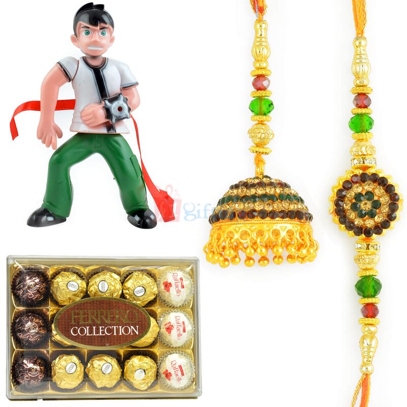 Buy T15 Ferrero Chocolate with Jewel Pair and Kids Rakhi Hamper