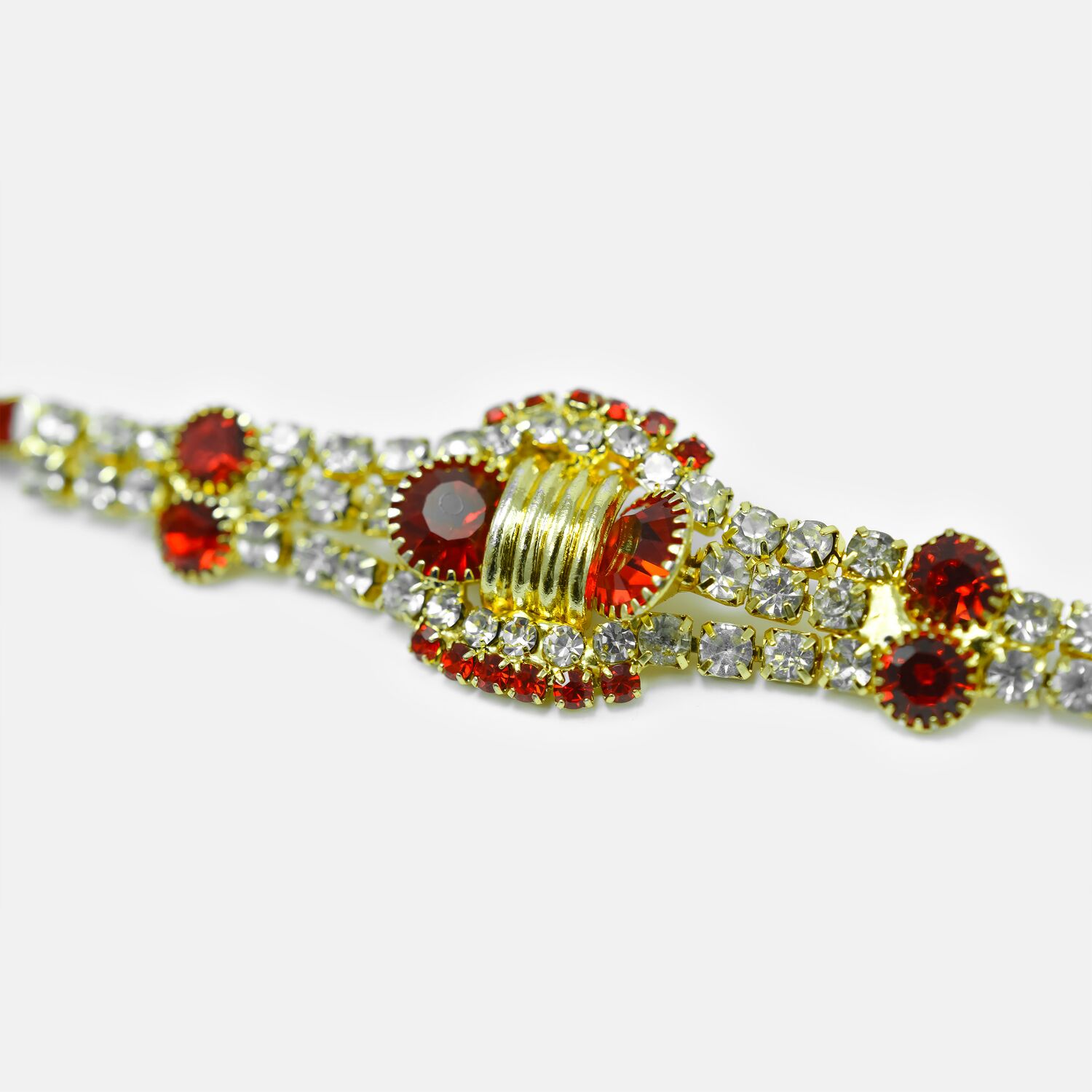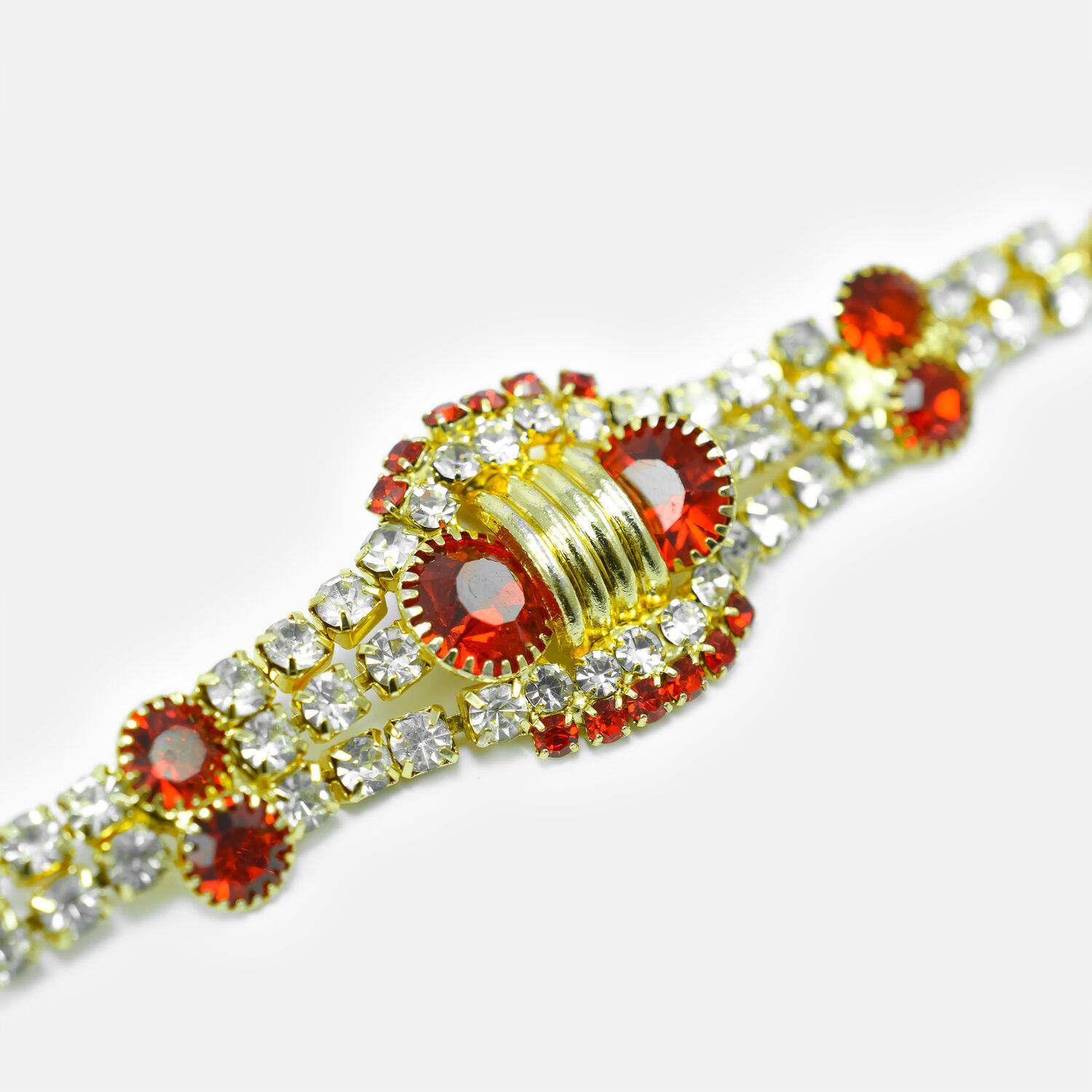 Order to Deliver Online : New Designer Stylish Looking Red and Silver Jewel Studded Rakhi for Brother for Raksha Bandhan.